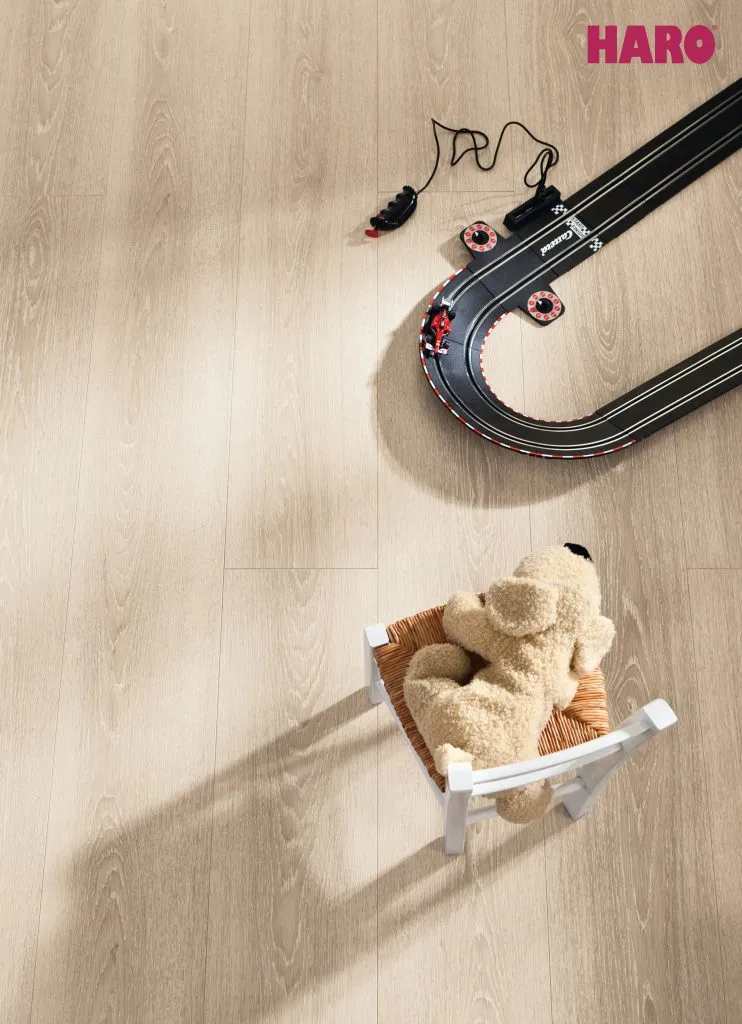 HARO leverer laminat av god slitestyrke med autentiske overflater som ser ut som ekte tregulv. Med Silent ComforTec har de det «stilleste» laminat-gulvet på markedet.